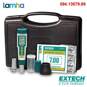 Máy đo PH, mv, nhiệt độ EXTECH PH220-C (0.00 ~ 14.00pH)Extech PH220-C là máy đo pH cỡ lòng bàn tay với điện cực được nối dây có thể đo độ pH, chênh lệch điện thế (mV) và nhiệt độ. Bộ vi xử lý tích hợp cung cấp khả năng nhận dạng bộ đệm tự động và bộ nhớ trong lưu trữ tới 25 bài đọc. Thiết bị hoàn toàn không thấm nước này có màn hình LCD lớn với các chỉ số đo đồng thời và chỉ báo pin yếu. Bao gồm điện cực pH có dây, bao da bảo vệ, bộ đệm pH và pin 9V.