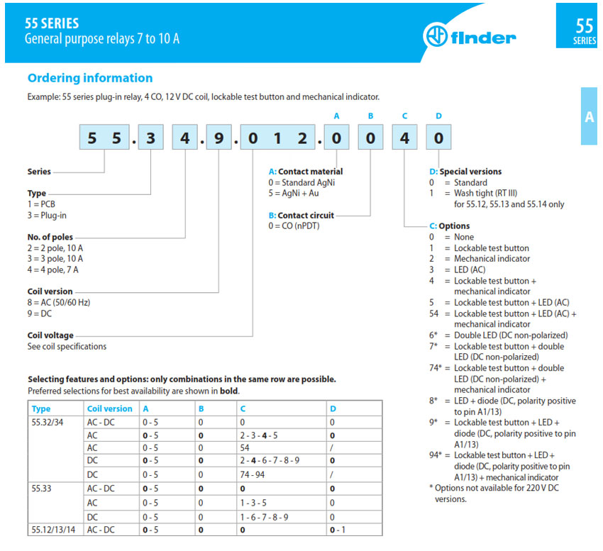 | 55.34.9.048.5040 | 48 V | 38.4...52.8 V | 4CO | 7A, 250VAC |