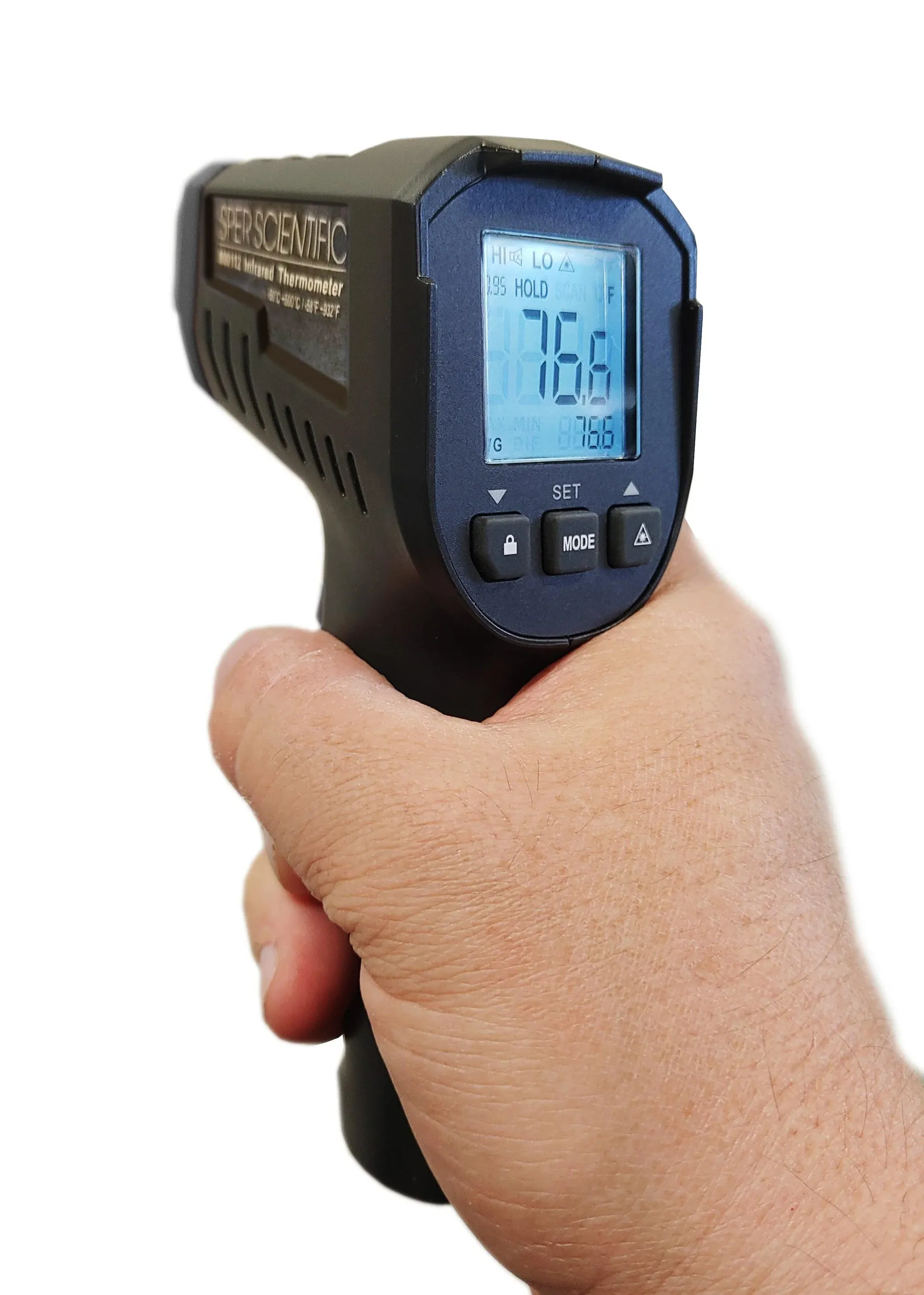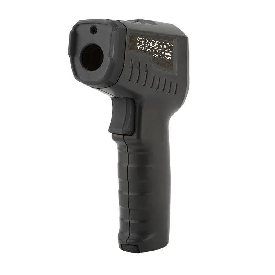 Nhiệt kế hồng ngoại Sper Scientific 800112 IR có thể nhanh chóng và chính xác xác định nhiệt độ (bề mặt) của vật thể bằng cách đo năng lượng hồng ngoại phát ra từ bề mặt. Tỷ lệ khoảng cách đến điểm đo là 12:1 , phù hợp cho việc đo nhiệt độ không tiếp xúc, và có phạm vi đo từ -58°F đến +932°F.