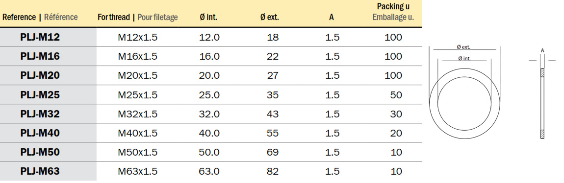PLJ-M20 | M20x1.5 | 20 | 27 | 1.5 | 100 |